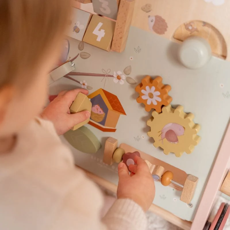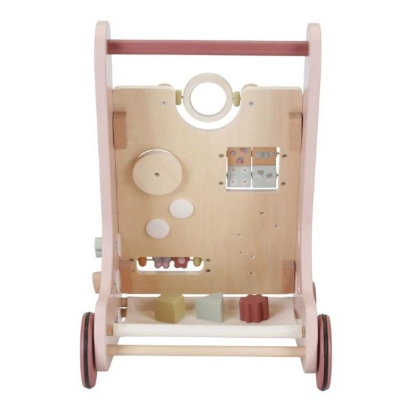 This wooden multi-activity walker offers many challenging activities to support the development of your child’s motor skills. There are multiple activities to explore and master. Thanks to the balanced design the baby walker is a great help for children of 12 months or older that are almost ready to take their first steps. Prepare yourself for some joyful cheers when your little one speeds through the house. The rubber wheels will not make any marks on your floor and are safe for use inside.