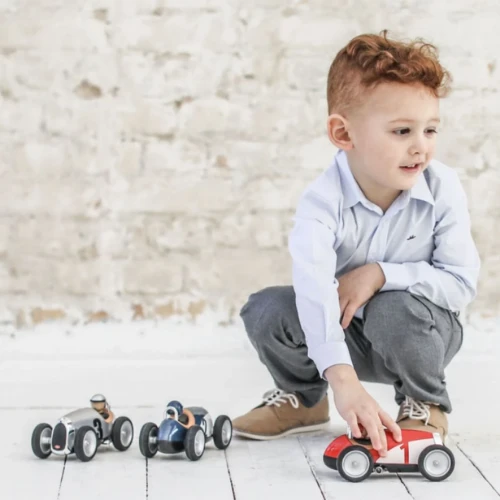 A streamlined front and large wheels like the old cars, for wild races! Because we know that children’s games expose our cars to pile-ups, the Racing Car is made of a very strong ABS plastic and then lacquered and polished by hand. It can thus withstand the most extreme driving conditions! In the tradition of renowned racing cars, the Racing Car was designed in France by our team of designers, crazy about the wheel!
